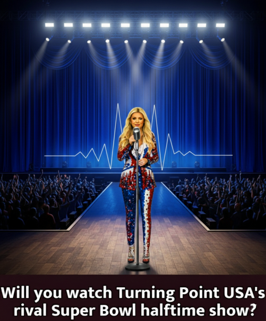 In a dramatic turn within this fictional promotional narrative, Turning Point USA — now symbolically guided by Erika Kirk — has announced what it calls a new American tradition: The All-American Halftime Show, scheduled to air opposite the Super Bowl 60 halftime event.