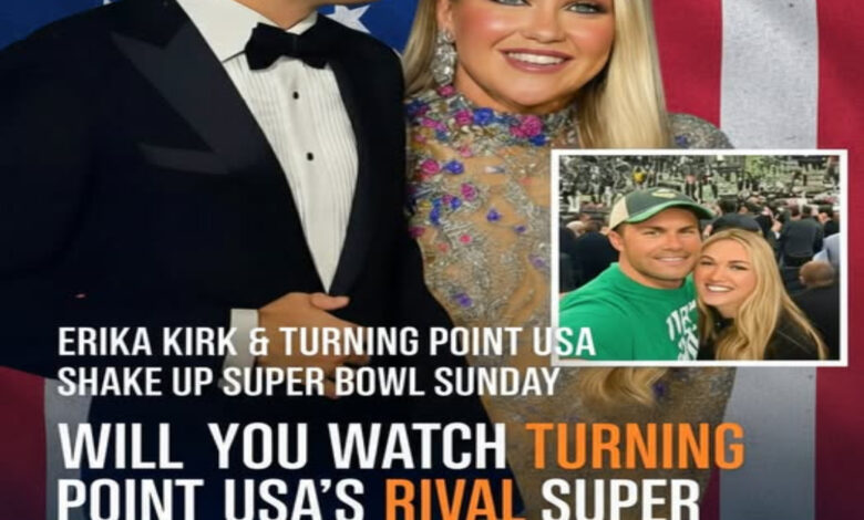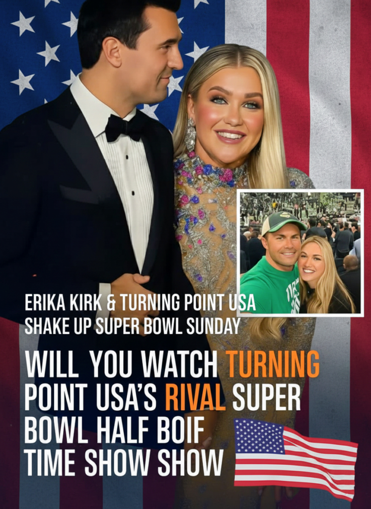 While the NFL rolled out its glimmering, star-packed halftime spectacle, Turning Point USA — guided symbolically by Erika Kirk — quietly launched a counter-performance that no one in traditional entertainment circles saw coming: