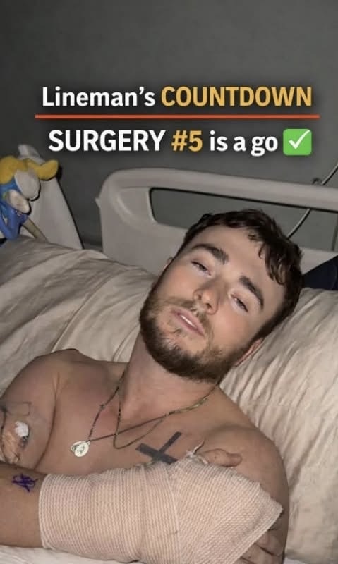 “Hunter remains mentally ready,” his family stated as the game entered its final minutes. This is the Lineman Ethos.These men don’t clock out when the storm hits; they climb higher. Hunter is treating Surgery #5 as the ultimate 4th quarter drive. He isn’t looking at the injuries; he’s looking at the “End Zone”—a future where he can use his hands to paint, to work, and to live.
