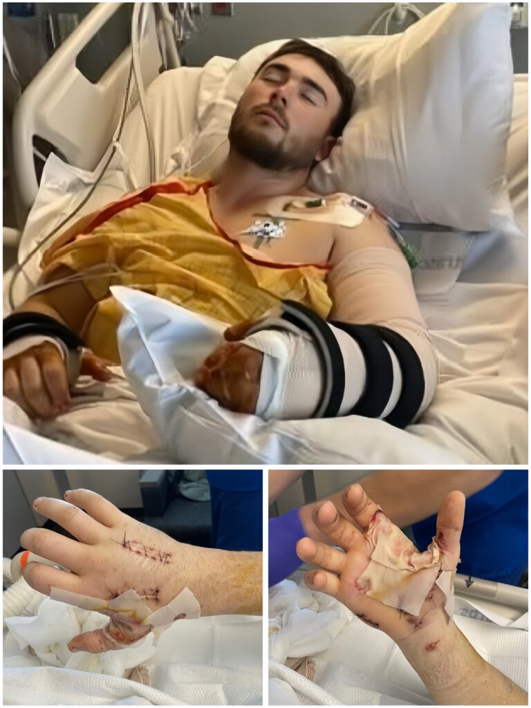 NEW ORLEANS, LA – In the quiet, humid air of the ICU, the smell of sterile saline and synthetic gauze usually defines the morning. But today, at exactly 11:15 AM CST, the scent was different. It was the scent of a “Clean Victory.” After surviving a 13,000-volt surge and the “Vascular Chaos” of previous days, 24-year-old lineman Hunter Alexander has entered what specialists are calling the “Matrix Awakening.” Behind the bandages of his scorched right hand lies a secret weapon—a high-tech biological powder that is currently “re-weaving” his infrastructure at a molecular level. This is the minute-by-minute account of the 11:15 AM dressing breach and the “Tactical Shampoo” that has left the medical staff in awe.