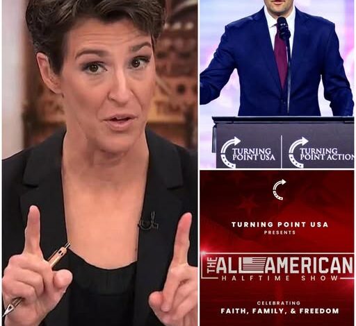 The topic: Turning Point USA’s shocking announcement of an “All-American Halftime Show,” a Super Bowl-style special reportedly centered around the late conservative firebrand Charlie Kirk. What began as a cultural segment quickly spiraled into one of the most emotionally charged on-air eruptions of Maddow’s career. Within minutes, social media exploded. Hashtags trended. Clips were cut, shared, dissected. And for the first time in years, even Maddow’s staunchest critics had to admit — she wasn’t just performing television. She was igniting a national reckoning.