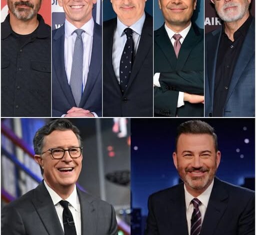 But tonight, under the blinding lights of a shared stage, those five voices — Stephen Colbert, Jimmy Fallon, Seth Meyers, John Oliver, and the recently silenced Jimmy Kimmel — have become one.
