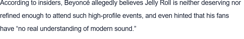 Behind closed doors, whispers grew that Beyoncé saw Jelly Roll’s inclusion as a