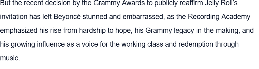 3S.GRAMMY SHOWDOWN: Beyoncé vs. Jelly Roll — “If He Attends, I Won’t Be There.”