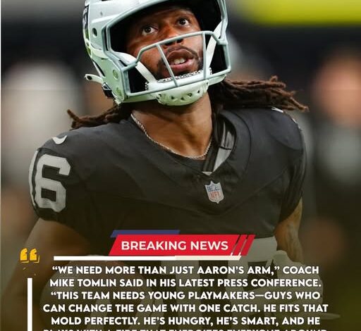 PITTSBURGH – After two straight losses, head coach Mike Tomlin appears ready to shake things up. Frustrated with an offense that has relied too heavily on veteran quarterback Aaron Rodgers, Tomlin is reportedly pushing the front office to make a bold move at the upcoming NFL trade deadline—and his top target is Las Vegas Raiders wide receiver Jakobi Meyers, one of the league’s rising offensive talents.