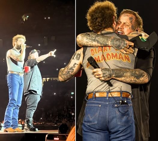 Post Malone and Jelly Roll stood on stage together, ready to share a song.