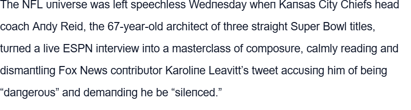 Andy Reid didn’t just silence Karoline Leavitt—he inspired millions, proving wisdom