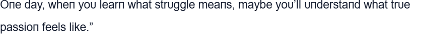 There’s a big difference. One day, when you learn what struggle means, maybe