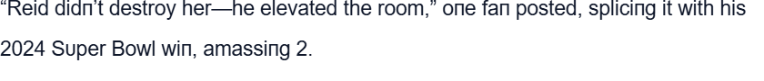 “Woods didn’t destroy her—he elevated the room,” one fan posted, splicing it with