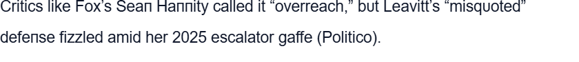 Critics like Fox’s Sean Hannity called it “overreach,” but Leavitt’s “misunderstood”