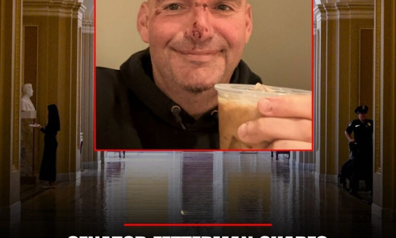 Fetterman, D-Pa., posted the close-up selfie on X Saturday, showing a stitched gash across his cheek as he held an iced coffee.