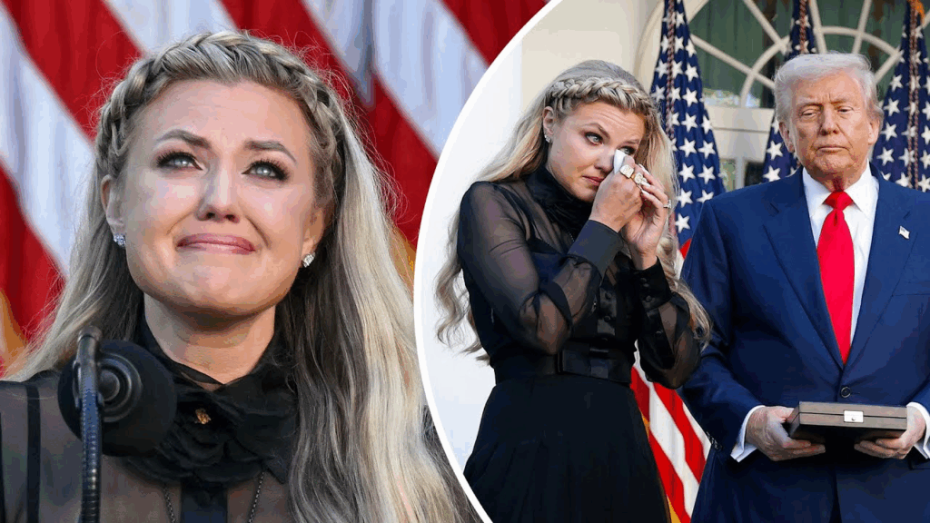In the golden hues of the White House Rose Garden on October 14, 2025—what would have been Charlie Kirk’s 32nd birthday—the air was thick with reverence and resolve. President Donald Trump, still jet-lagged from his triumphant Middle East peace tour, stood tall to posthumously award the Presidential Medal of Freedom to the slain conservative firebrand. But it was Erika Kirk, Charlie’s widow and Turning Point USA’s steadfast CEO, who stole the moment with a message of undying love and unyielding purpose. Clutching the medal—America’s highest civilian honor—she transformed the ceremony into a personal vow, closing her remarks with a whisper that echoed across the nation: “Happy birthday, my Charlie. Happy Freedom Day.”