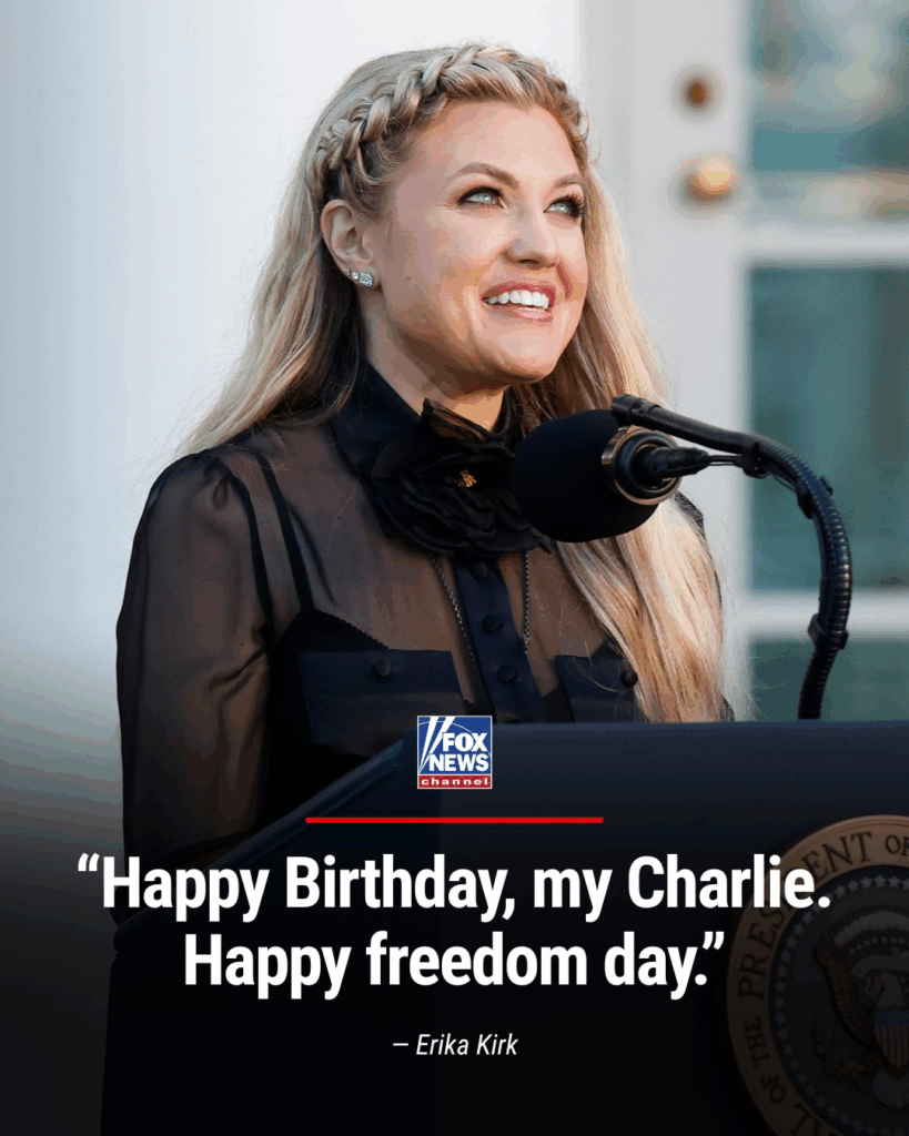 The moment wasn’t just emotional—it was electric. On X, #HappyFreedomDay and #CharlieKirkLegacy exploded past 1.2 million posts within hours, with fans sharing clips of Erika’s speech and Charlie’s iconic rallies. One viral post from @TPUSAFaith read: