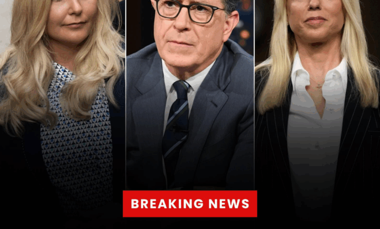 NEW YORK – The Ed Sullivan Theater, a bastion of late-night levity for over a decade, fell into an unearthly silence last night. At 11:37 PM EST, during what was billed as a lighthearted segment honoring the late Virginia Giuffre, host Stephen Colbert did something unprecedented: he shattered the fourth wall of comedy, his voice cracking like thunder as he accused former Florida Attorney General Pam Bondi of shielding the elite from accountability in the Jeffrey Epstein scandal. “She told the truth and was buried by the powerful,” Colbert said, his hands trembling on the desk, eyes glistening under the studio lights. “And from what I’ve seen… Pam Bondi helped protect those powerful men.” The audience of 400 held its collective breath—no laughter, no applause, just the weight of a moment that transcended satire.