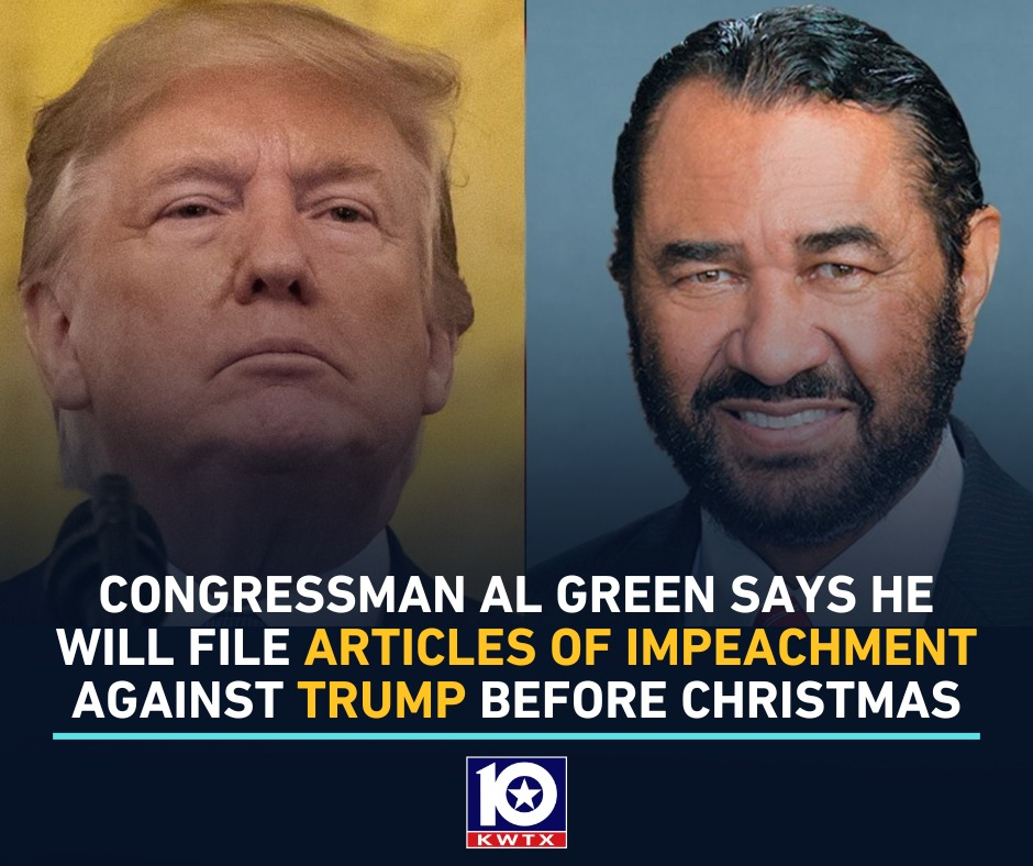 WASHINGTON (Gray DC) – Congressman Al Green (D-TX) announced Thursday he will file articles of impeachment against Donald Trump before Christmas.