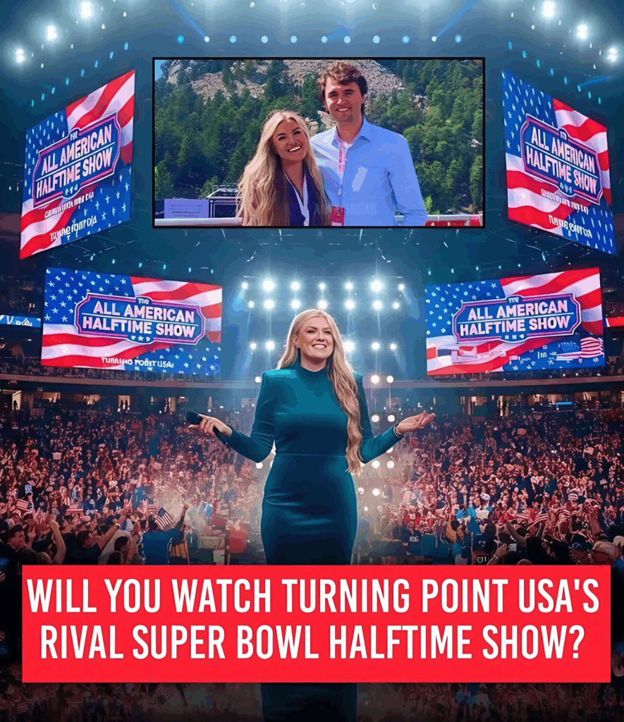 Her voice trembled only slightly as she revealed what may be the boldest cultural move in Turning Point USA’s history: “The All-American Halftime Show.”