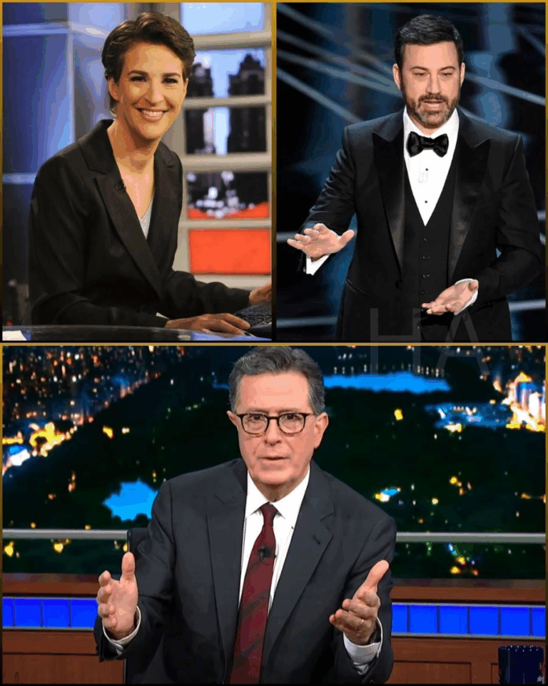 The trio’s joint exit didn’t happen overnight. Insiders say quiet meetings began months ago, each conversation fueled by frustration over censorship, ratings pressure, and the subtle but suffocating grip of corporate influence. Maddow reportedly reached her breaking point after a major investigative piece on lobbying in Washington was “revised for tone.” Colbert, tired of softening his satire, began questioning whether his platform still belonged to him. And Kimmel, once the class clown of late-night, grew weary of being told which jokes might upset sponsors.