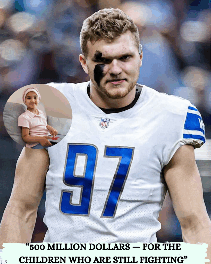 Fans on X (Twitter) exploded: “Aidan Hutchinson just donated $500M to cancer? That’s the real GOAT! 🦁💙” – a post that received 50,000 shares. Stars like Patrick Mahomes and Travis Kelce also sent their well wishes, promising to join in on the donations. With the Lions leading the NFC North, Aidan promises to bring that spirit to the field, turning the pain into motivation for the team.