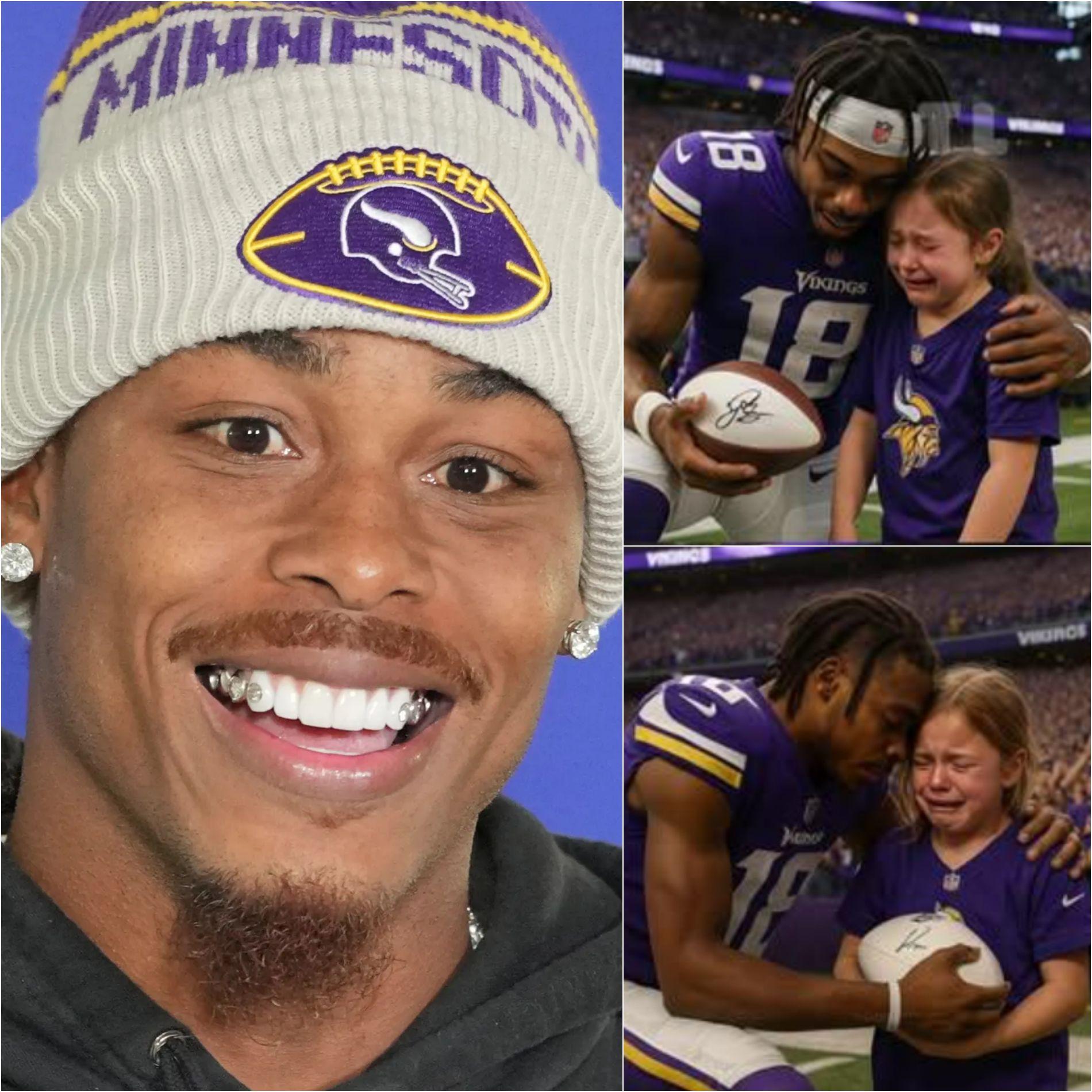 BB.FROM BREAK TO MIRACLE: 8-year-old girl “searched” for cans, baked cookies, spent 3 years collecting every penny to buy Vikings tickets – Justin Jefferson not only gave away seats, but also “stole” the entire U.S. Bank Stadium with tears and loud cheers!