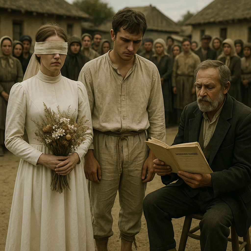 The next day, the wedding happened in a rushed ceremony. There was no joy, no laughter, only whispers and cruel smiles. No one described her groom’s face to her. She was shoved toward him and told to take his arm, her father muttering, “She’s your problem now.” The villagers laughed behind their hands. “The blind girl and the beggar,” they whispered. Afterward, her father handed her a small bag of clothes and walked away without looking back. Her new husband, whose name was Yusha, led her silently down the dusty road. He spoke only when they reached a broken hut on the edge of the village. “It’s not much,” he said softly, “but you’ll be safe here.”