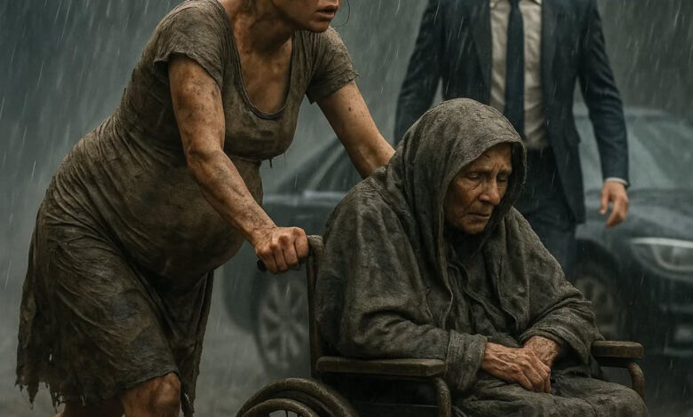 In the scorching afternoon heat, a homeless pregnant woman pushed her squeaky wheelbarrow down the dusty road when she noticed an elderly lady trembling by the sidewalk, clutching her purse in confusion. Without hesitation, she offered her water, a seat, and a kind smile—never asking for anything in return. Hours later, that simple act of compassion would change her life forever. The “lost old woman” she helped wasn’t just anyone—she was the mother of one of the city’s richest billionaires. And when the truth came out, the woman who had nothing was about to receive more than she ever dreamed possible.