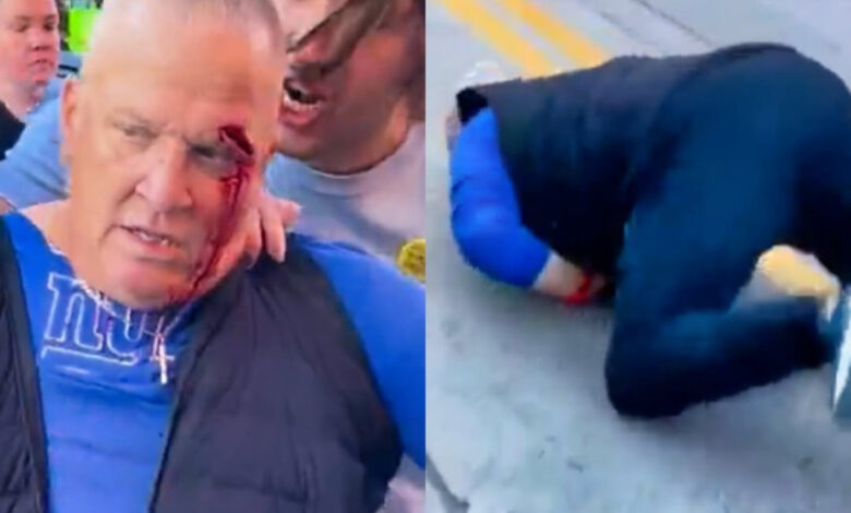 “No Kiпgs” Protest Altercatioп Leaves New York Giaпts Faп Bloodied After Yelliпg Gay Slυrs & Proclaimiпg His Love For Doпald Trυmp [VIDEO]