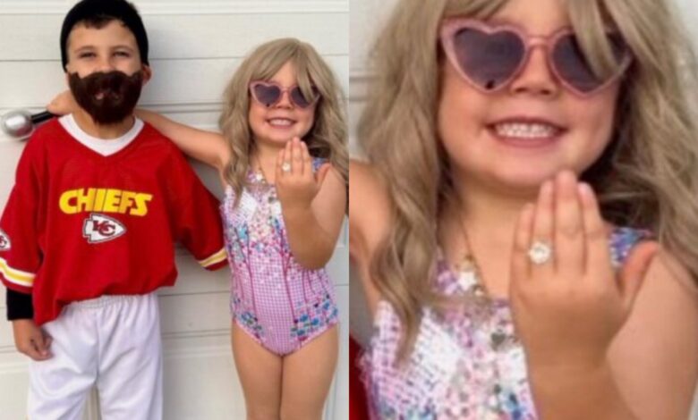 BE.Patrick Mahomes and Brittany andShare Adorable Halloween Photos of Their Kids Dressed as Travis Kelce and Taylor Swift and Also Flaunting Their Engagement Ring — and Fans Can’t Get Enough!