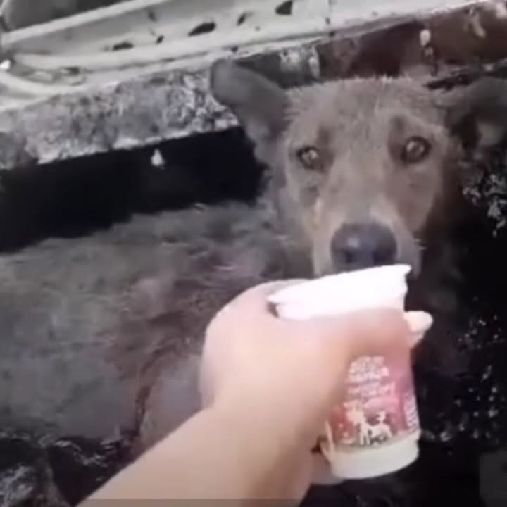 The sight that greeted them was heartbreaking. The dog was barely alive, her body covered in burns, and the asphalt had hardened around her like a cruel shell.