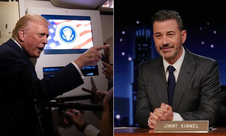 🚨 LATE-NIGHT NUCLEAR MELTDOWN: Jimmy Kimmel’s “QUIET, PIGGY!” Slap at Trump After Epstein Files Fury – But Leaked White House Memos Hint Trump’s “No Talent Bum” Rant Masks a Desperate Plot to Silence ABC Over Hidden Tapes! 😱 Was Kimmel’s Witty “I’ll Go When You Go” Deal a Veiled Threat of Mutual Destruction, or Did Trump Watch Live at 1 AM to Spy on “Sex Scandal” Jabs That Could Tank His Approval to Historic Lows? Insiders Freak: Is This the Start of a FCC Raid on Kimmel’s Studio, or a Snowflake President’s Toilet Tweet Tantrum Exposing His Own Epstein Ghosts? The 5-Week Cycle of Rage: Fired Demands, Mic Drops, and a “Suntan Kid” Sunset Pact – But Who’s Really Getting Canceled? Social Media’s Boiling: “Trump’s a Snowflake!” vs. “Kimmel’s Doomed!” One Monologue. Endless Chaos. The Presidency’s Biggest Beef Yet – Your Late-Night Laughs Hang in the Balance! Who’s Bluffing? The Truth Could End Careers Overnight. 👀🔥 #KimmelVsTrump #QuietPiggy #EpsteinFilesRage #LateNightWar