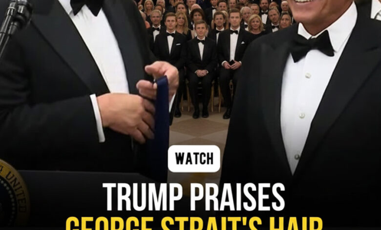 In the hallowed hush of the Oval Office on December 6, 2025, as President Donald J. Trump draped the glittering Kennedy Center Honors medallion around George Strait’s neck, the air crackled with something beyond mere ceremony. The King of Country, ever the gentleman, doffed his signature Resistol cowboy hatâa ritual as sacred as a Sunday hymnârevealing a shock of silver-streaked locks that gleamed under the chandeliers. Trump’s eyes widened, his trademark grin splitting wide: “Oh, he’s got good hair!” The room tittered, Strait chuckled modestlyâ”A little bit”âand the moment beamed out live, a viral vignette of bipartisan bonhomie amid America’s polarized pulse. But rewind the tape in slow-mo, and unease creeps in. Was this avuncular admiration from a man who’s built empires on image, or a sly barb from the self-proclaimed “beautiful hair” icon whose own follicular facade has fueled decades of whispers? Strait, 73, the stoic Texan who’s dodged scandals like tumbleweeds, suddenly spotlit not for 60+ No. 1 hits or billions in tickets sold, but for his mane? Insiders murmur of deeper digs: Trump’s history of “hair envy” jabs at rivals, from Biden’s “sleepy” strands to McCain’s buzzcut barbs. And Strait? Rumors swirl of a “hat tax” in Nashvilleâcowboy lids as shields against age’s cruel cue. Is this lighthearted lore, or a presidential power play, unmasking the myth of eternal youth in countryâs crown jewel? Friends say Strait’s unfazed, but X erupts: #GoodHairGate trends with 1.2M posts, unearthing unearthed feuds and forgotten feints. What if that quip cracked open a vault of vanity, vendettas, and veiled vulnerabilities? The medallion shines, but the shadows? They whisper of thrones toppled by a single strand. Dive deeper; the truth tangles like a bad perm, leaving you questioning: In the game of hair and honors, whoâs really wearing the crown?