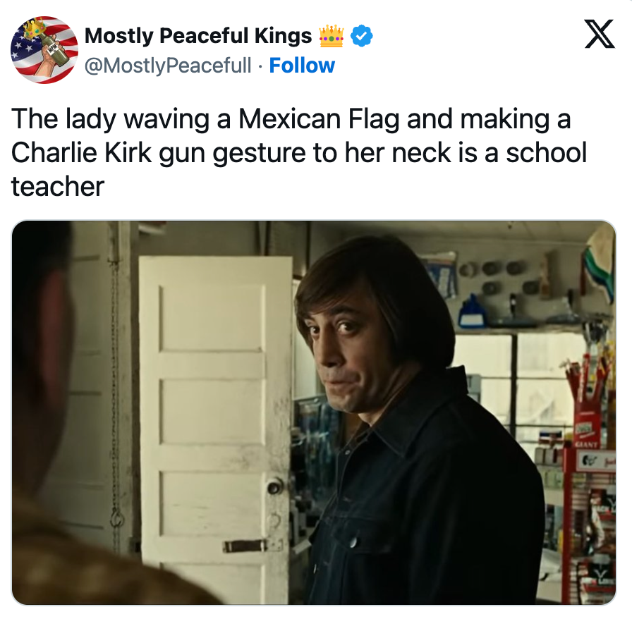 In Chicago, a woman with a Mexican flag mocked Charlie Kirk’s as