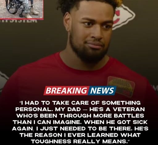 After disappearing for four weeks due to personal reasons, Chiefs rookie Josh Simmons returns with gratitude — dedicating his comeback to his father, a wounded veteran who taught him that real strength isn’t physical, but born from perseverance and love.