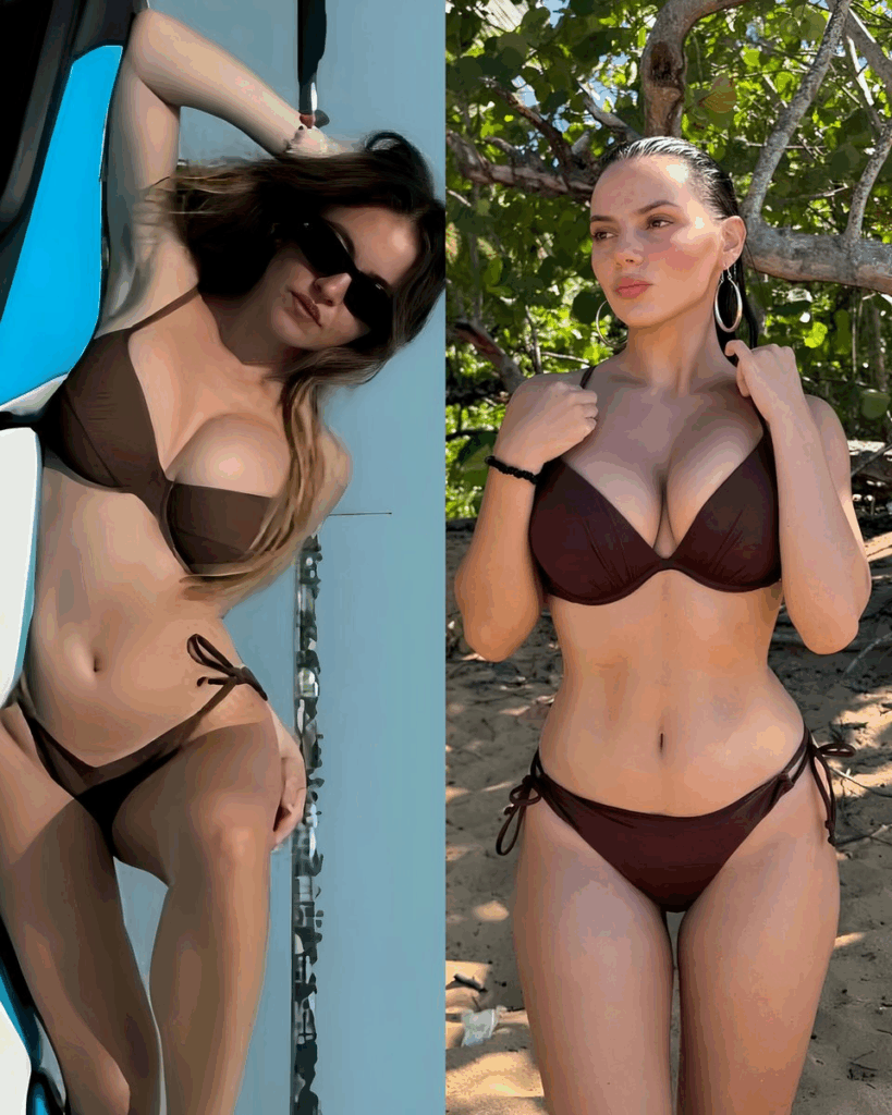 The internet’s attention is currently locked onto a single, highly charged image: a viral side-by-side photo comparison featuring Hollywood sensation Sydney Sweeney and the talented, unconventional star Dafne Keen, both photographed wearing remarkably similar brown bikinis. The reactions are explosive, and the unexpected winner is causing a massive cultural stir.
