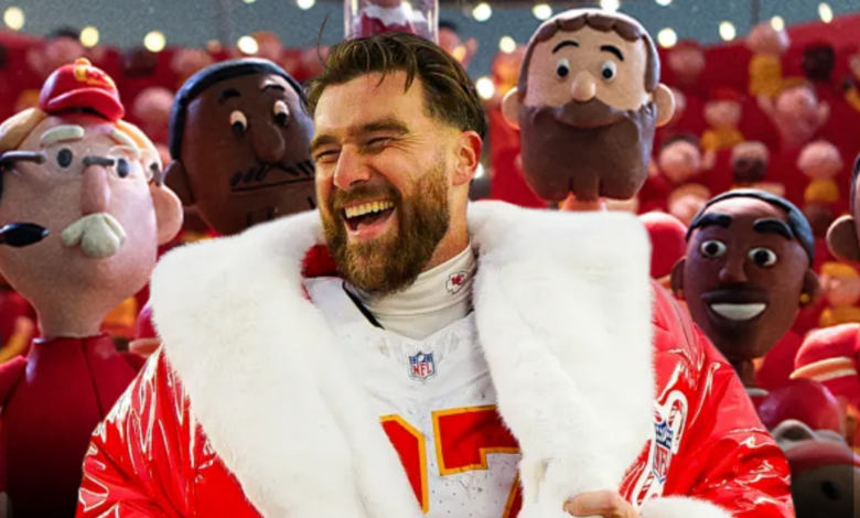 The short film features an adorable, animated clay figure of Kelce, complete with his iconic number 87 jersey and an elfish grin. The premise is simple: the Chiefs team, including claymation versions of Patrick Mahomes, Chris Jones, and Coach Andy Reid, are away on a road game, leaving “Kelce on the Shelfie” home alone at GEHA Field at Arrowhead Stadium.