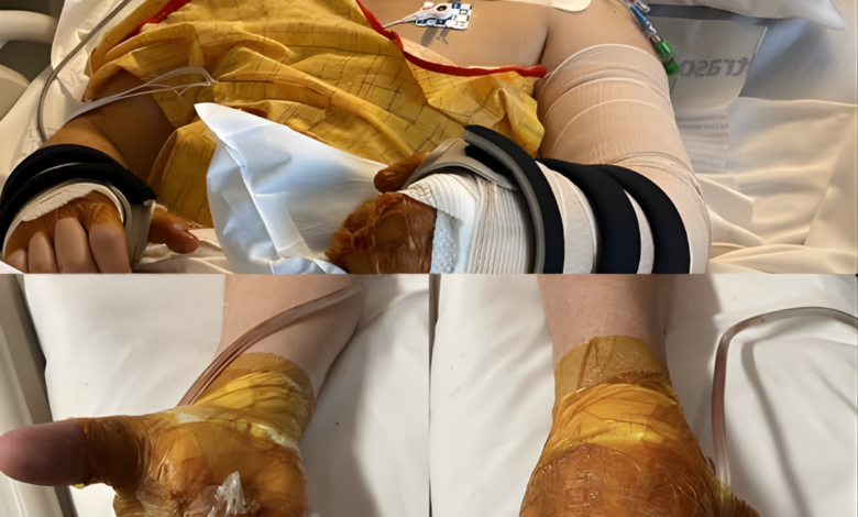 During today’s operation, surgeons concentrated on Hunter’s left hand, where high-voltage electrical trauma caused significant tissue damage.