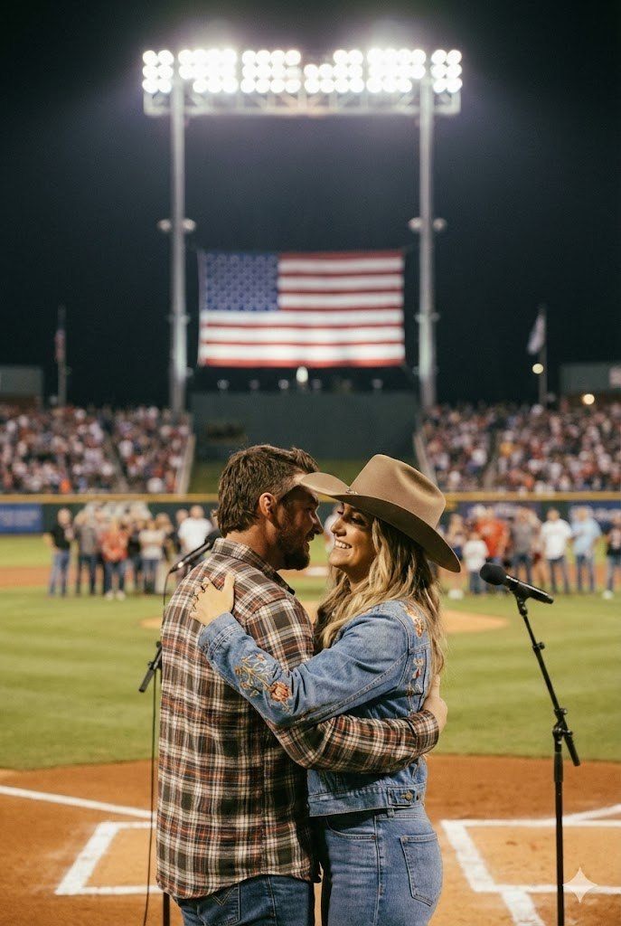 Before the first note of the American National Anthem was sung, there was no swelling music, no dramatic lighting cue, no roar of anticipation. Instead, there was a pause — the kind that feels slightly uncomfortable in a packed stadium. Then Lainey Wilson stepped forward beside her partner, Devlin Duck Hodges, and something quietly irreversible began.