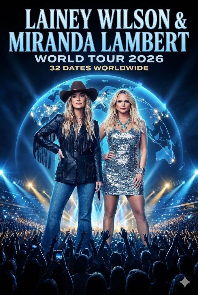 In a move that has instantly shaken the country music world, CMA Entertainer of the Year Lainey Wilson and powerhouse hitmaker Miranda Lambert have officially unveiled their “Wildflowers & Wildcards” 2026 World Tour — a globe-spanning, 35-date spectacle already being hailed as the defining live event of the decade.