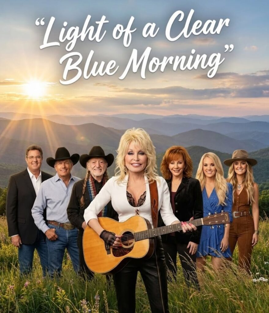 Standing inside a quiet room that quickly filled with emotion, Parton appeared alongside some of the most influential voices in country and American music — George Strait, Vince Gill, Reba McEntire, Carrie Underwood, Lainey Wilson, and Miley Cyrus — to announce a powerful new version of her classic song “Light of a Clear Blue Morning.” What was first introduced as a musical collaboration soon revealed itself as something deeper: a statement of love, legacy, and purpose.