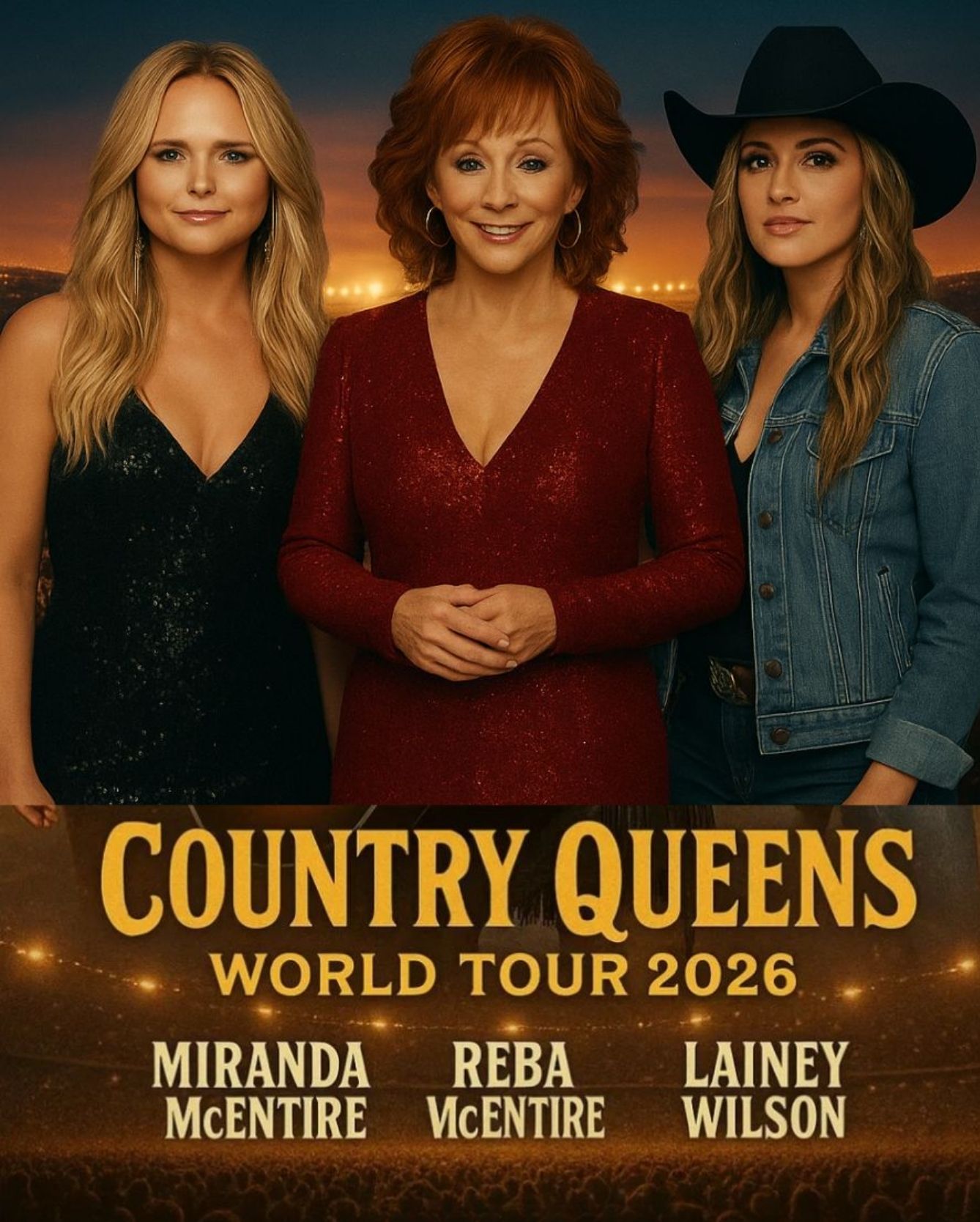 d+ Breaking now — Country Royalty World Tour: Miranda Lambert, Reba McEntire, and Lainey Wilson have officially announced a monumental joint world tour, bringing three generations of country power to one global stage. It’s more than a tour — it’s a celebration of legacy, strength, and the women who redefined country music. Get ready for the show of a lifetime.