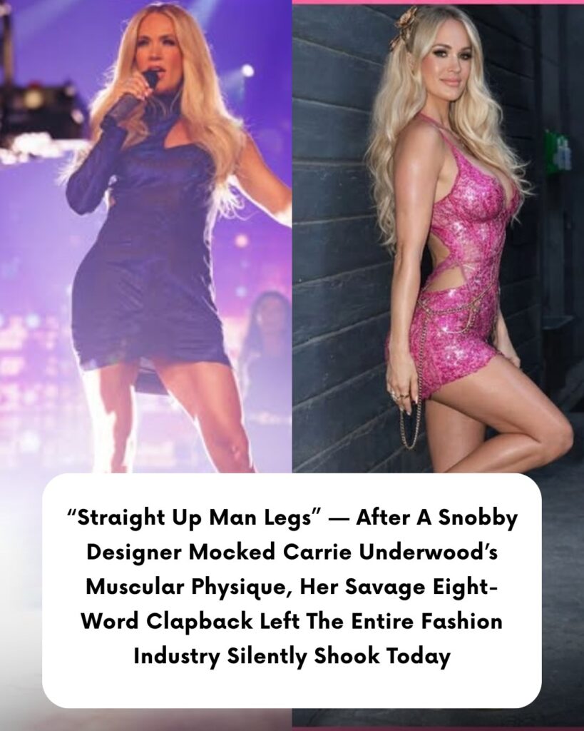 Behind the velvet ropes of a luxury fashion event, amid champagne flutes and camera flashes, a designer’s alleged remark cut through the glittering air: Carrie Underwood’s legs were “too muscular.” Not elegant. Not refined. Not the kind of silhouette high fashion prefers.