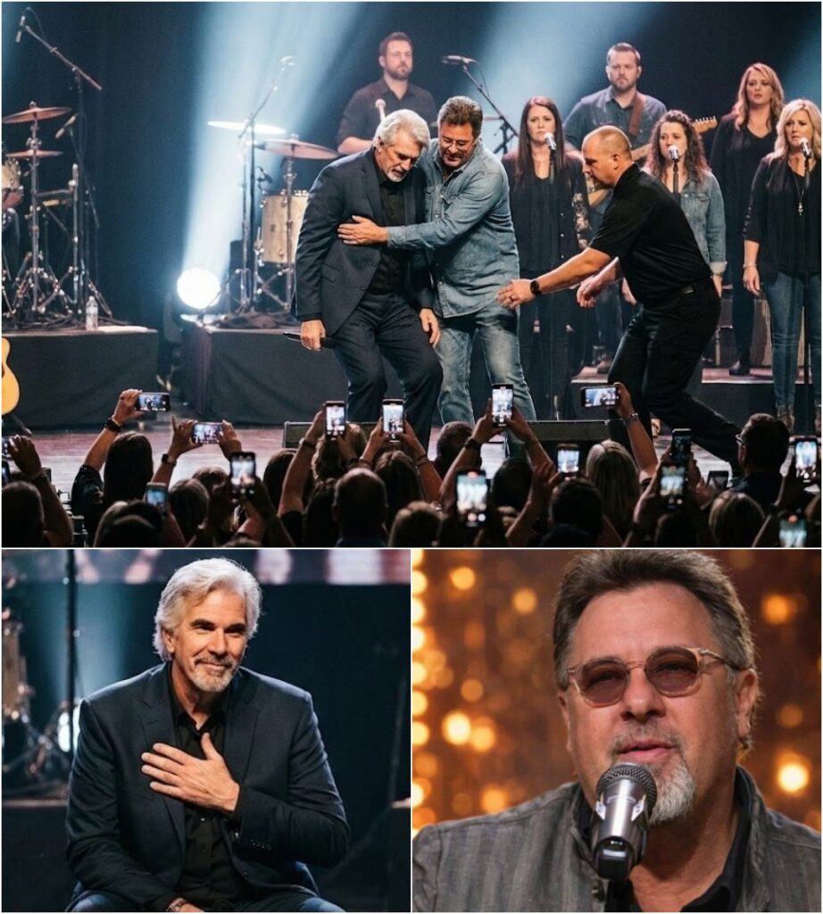 Eyewitnesses describe the moment as surreal. Instruments cut off mid-note. Backup singers froze. Fans rose from their seats in confusion, then fear. But Vince Gill didn’t hesitate. He rushed forward, kneeling beside his longtime friend, urgently calling for medical assistance as the reality of the situation set in.
