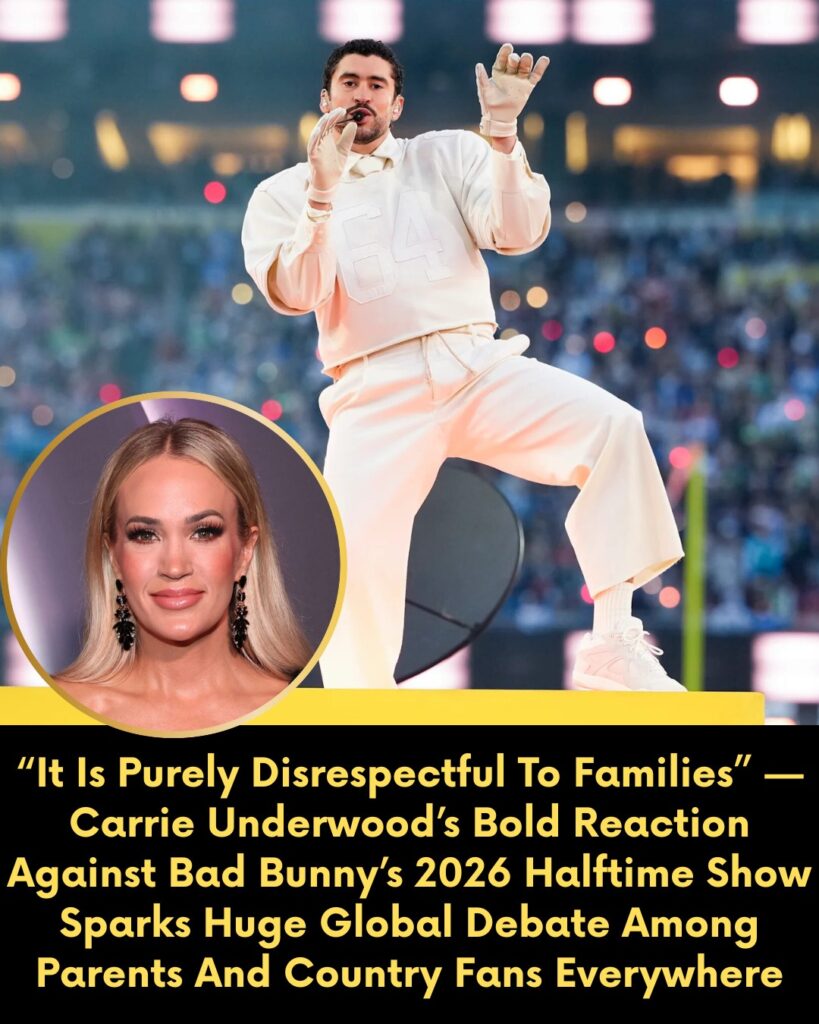d+ “Purely Disrespectful to Families”: Carrie Underwood’s Fierce Response to Bad Bunny’s 2026 Halftime Show Ignites a Worldwide Cultural Debate…