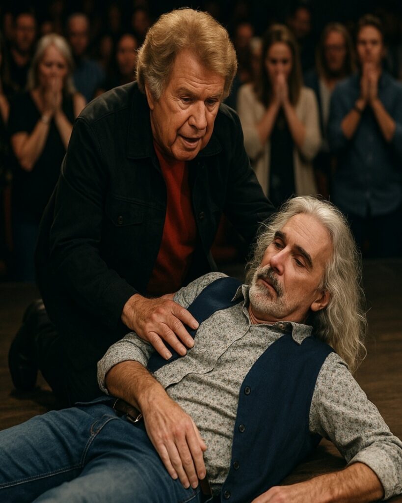 Witnesses say Gaither, pale and visibly shaken, rose from his seat and moved quickly toward the stage where Penrod was mid-performance. There was no cue from the band. No signal from backstage. Just a sudden, urgent presence that instantly altered the atmosphere in the room.