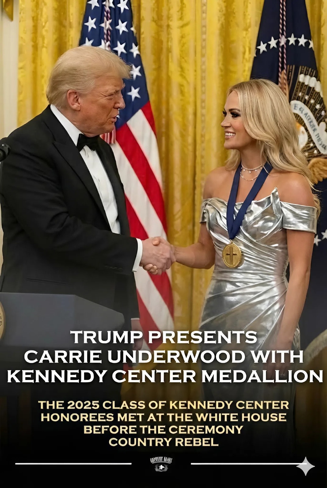 WASHINGTON, D.C. — In a ceremony defined by elegance, legacy, and the quiet weight of American cultural history, no one expected the biggest headline of the night to come from a burst of unscripted laughter between President Donald Trump and Carrie Underwood. But that’s exactly what happened — and within minutes, the clip began circling the internet at lightning speed.