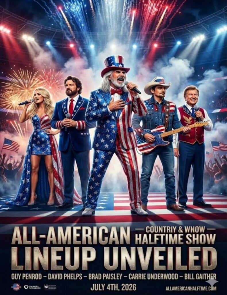The inclusion of Guy Penrod elevated the project instantly. A beloved figure in gospel and Christian music, Penrod is known not only for his powerful vocals but for his deep connection with faith-based audiences across generations. His presence transformed the All-American Halftime Show from a political statement into a moment of cultural legitimacy.