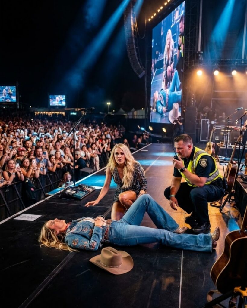 To many fans watching from the stands, the image was surreal — two of country music’s most recognizable stars, no longer performers under bright lights, but two women kneeling on a stage, fear written plainly across their faces. Carrie didn’t hesitate. She didn’t look to security or wait for direction. She ran.