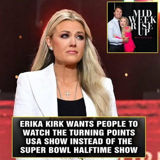 When Erika Kirk shouted, “Turn off their lights!” during the Super Bowl, the stadium froze. For a heartbeat, millions of eyes locked on screens, hearts racing, and social media erupted into instant chaos. Was it a patriotic rallying cry—or a calculated Deep State decoy aimed at disrupting Bad Bunny’s global entertainment empire? Analysts warn that this fleeting moment may be far more consequential than anyone realizes, a silent power play with ripple effects across politics and entertainment.