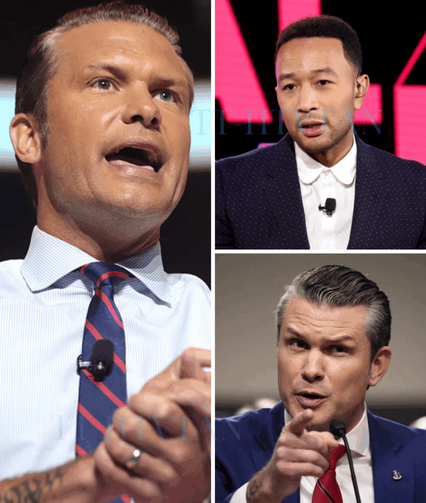 What began as a seemingly ordinary TV discussion about music and community work quickly spiraled into one of the most jaw-dropping moments on live television in recent memory. Pete Hegseth, host and commentator known for his provocative style, took aim at John Legend in a remark that left the studio stunned. “A self-important performer pretending to be a community hero,” Hegseth quipped, attempting a smirk that, in retrospect, seemed premature.