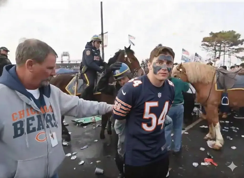 Outside Soldier Field, the atmosphere spiraled quickly. Fans in orange and navy clashed with fans in black and gold, their faces twisted in anger, their voices nearly drowned out by the roar of thousands trying to enter the stadium. Some fans tried to break up the fights, shouting for calm. Others pulled out their phones, capturing scenes that would soon flood every corner of social media.