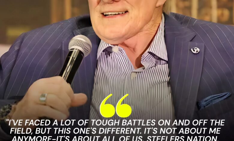 The symbolism is unmistakable. Here is a man whose very name conjures images of victory and resilience now confronting vulnerability. His eyes, usually sparkling with humor and confidence, reveal a deep, human struggle, reflecting both his courage and the anxiety of his family and loved ones. Fans can’t help but feel the weight of this shared concern, as if the beloved general of Pittsburgh’s football dynasty is leading one last, personal battle—this time against an invisible adversary.